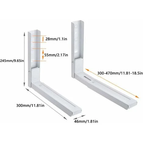 【Conception Unique】 La longueur du rail de montage est réglable et la profondeur maximale peut être ajustée à 47 cm. Ne vous inquiétez pas du fait que le four à micro-ondes est trop grand pour tenir.