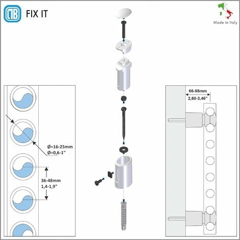 Ensemble de 3 fixations STN-N pour radiateur sèche-serviettes à réglage horizontal, idéal pour les murs standards et en placoplâtre. Utilisez des vis et des chevilles appropriées. Capacité maximale 30 kg par étagère, 90 kg au total. Idéal pour tous les types de sèche-serviettes et porte-serviettes chauffants avec des diamètres de tube de Ø16 à 30 mm et une distance entre les tubes de 20 à 30 mm.