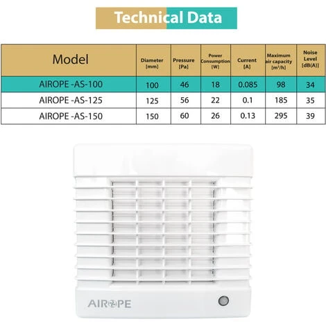 ✅ Une grande version de 100 mm. Débit d’air impressionnant de 70 m3/h. tension de 220-240 V, Consommation : 7.9 W, Fréquence de 50/60 Hz , Seulement 26 dBA .Faible bruit et faible puissance pour Salle de Bain,Cuisine,Bureau etc.