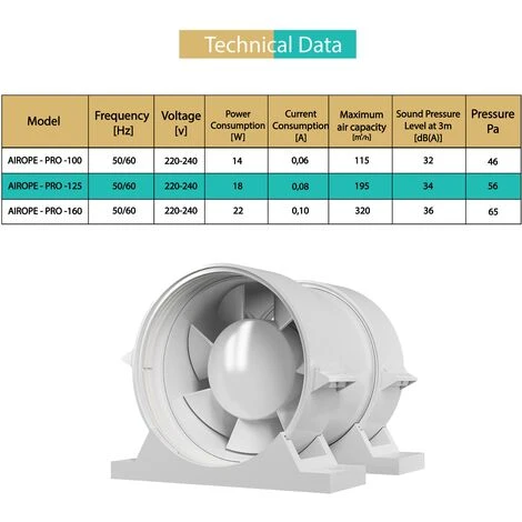 ✅ Les Caractéristiques techniques de Conduit en ligne : 195 m³ / h de débit, Consommation : 18 W, Fréquence de 50 /60 Hz, tension de 220-240 V, Vitesse de rotation est 34 dBA. Faible bruit et faible puissant.