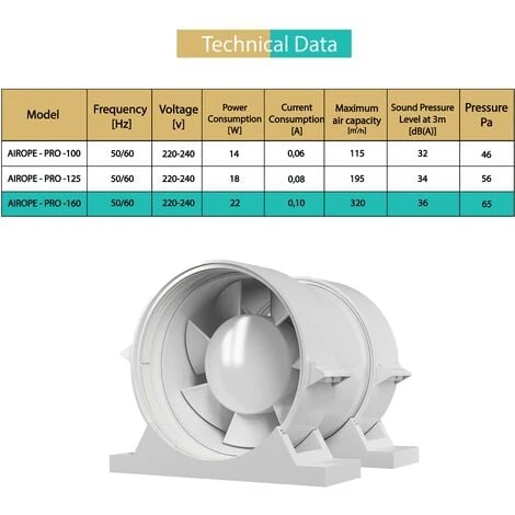 ✅ Les Caractéristiques techniques de Conduit en ligne : 320 m³ / h de débit, Consommation : 22 W, Fréquence de 50 /60 Hz, tension de 220-240 V, Vitesse de rotation est 36 dBA. Faible bruit et faible puissant.