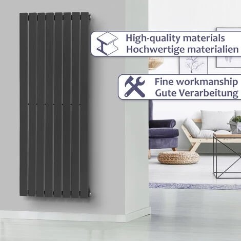 Ce radiateur vertical contemporain, en plus de son aspect élégant, offre des performances impressionnantes. Grâce à sa construction en acier anthracite et son design moderne, à part du chauffage de votre maison (1062W), notre radiateur la rend également plus accueillante.