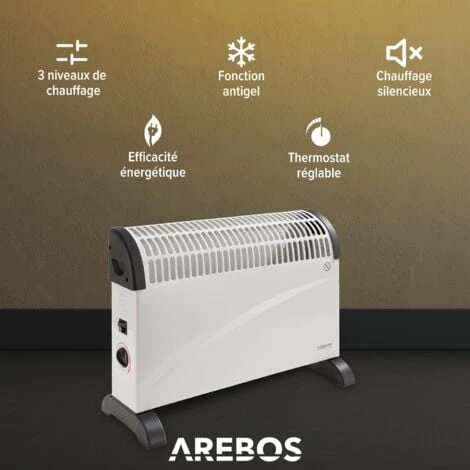 Convecteur AREBOS 2000 W – appareil de chauffage rapide et compact pour une chaleur agréable en guise de chauffage de transition ou d’appoint