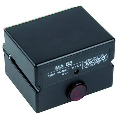 Ce relais est compatible SICMA, SEET, MAZECO et FRANCIA. Pré-ventilation : 10. Pré-allumage : 10. Sécurité : 10. Nombre allures : 1 On l’appelle aussi : carte électronique chaudière, programmateur, relais, bloc actif, boitier de contrôle, boîtier de contrôle, coffret de sécurité La MA55 ne gère pas le réchauffeur (prendre la MA55H pour avoir la gestion du réchauffeur)