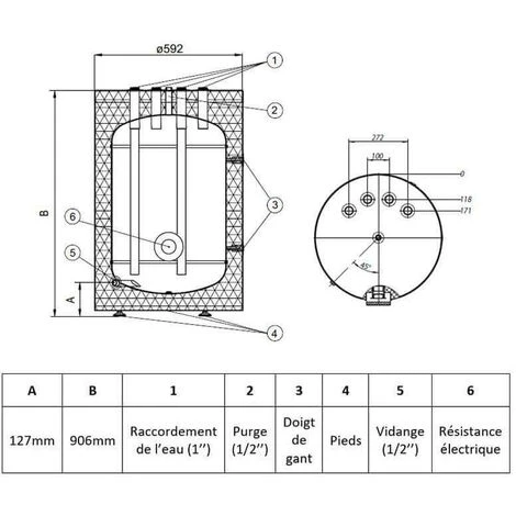 Cuve en acier non émaillé / Isolation en mousse PUR 65mm