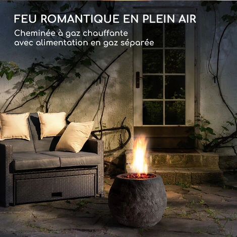 Foyer à gaz performant pour le romantisme et la chaleur naturelle dans les oasis de plein air : le foyer à gaz Andros de blumfeldt allie beauté rustique et fonctionnalité confortable.