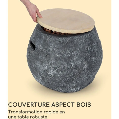 Avec le foyer à gaz Andros de blumfeldt, vous pouvez installer dans votre jardin une vasquemerveilleusement romantique qui se transforme en un clin d’œil en une table de jardin rustique. En contrepartie, le robuste chauffage à gaz est équipé d’un couvercle assorti, résistant et d’aspect bois. Si vous enlevez le couvercle qui correspond exactement, vous découvrez un foyer dans lequel des flammes chaudes jaillissent de pierres de lave naturelles.