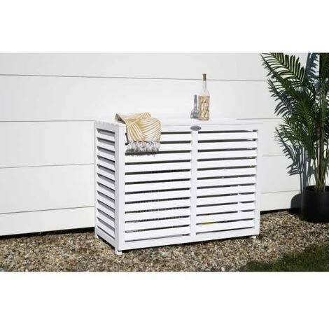 Metosi Air Cover blanc taille L Fabriqué à partir de WPC durable (mélange de résidus de bois recyclés et de plastique), le Cache Clim Metosi a l’apparence du bois et reste beau longtemps dans toutes les conditions météorologiques. Il est compatible avec toutes les marques de climatiseurs. Metosi Air Cover blanc taille L – Protège l’unité extérieure contre les intempéries – Si l’unité extérieure est un peu plus ancienne mais que la climatisation fonctionne toujours correctement, vous pouvez la masquer. – Il réduit le bruit de la climatisation de quelques décibels. – Des plantes ou des objets de décoration peuvent être ajoutés pour permettre au produit de se fondre dans l’environnement. – Compatible avec toutes les marques de climatiseurs. Dimensions taille L : – Dimensions intérieures LxHxP: 982 x 462 x 787mm – Dimensions extérieures LxHxP: 1050 x 496 x 831mm – Poids: 17,1kg – Dimensions emballage inclus LxHxP: 108x87x15cm – Poids emballage compris: 18,6kg