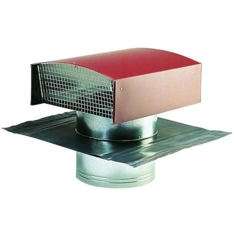 Chapeau de toiture en métal couleur tuile, pour le rejet ou la prise d’air de conduits de ventilation ou hotte de cuisine. Diamètre 125 mm
