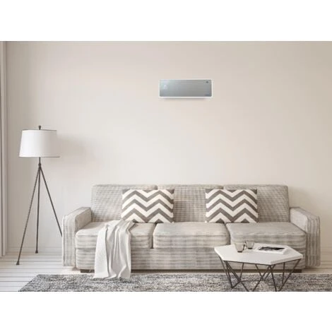 Il dispose d’un panneau numérique LED à travers lequel vous pouvez régler le thermostat et programmer la température jusqu’à 24h, vous pouvez également choisir le mode de fonctionnement qui convient le mieux à vos besoins (ventilation, tempéré ou chaud). Il comprend également la possibilité de programmer une température différente pour chacun des 7 jours de la semaine. Avec un design élégant en argent, compact (LxPxH : 54x19x12 cm) et léger (6kg), il est très facile à accrocher au mur, comprend une télécommande et chauffe des surfaces jusqu’à 20m2.