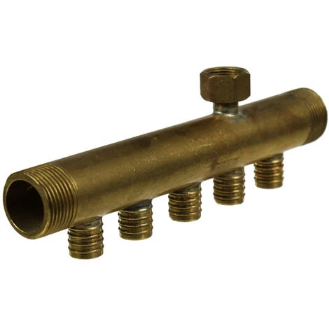 Dimensions : Collecteurs pour chauffage 3/4 Mâle-Mâle disponibles de 4 à 7 départs (piquages) pour tubes PER de diamètre 16. Entr’axe : 30 mm.