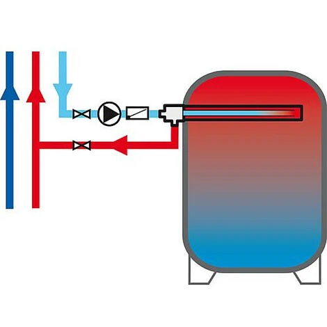 En utilisant un échangeur à tubes RWCX la pompe de circulation fonctionne indépendamment du préparateur d´ECS