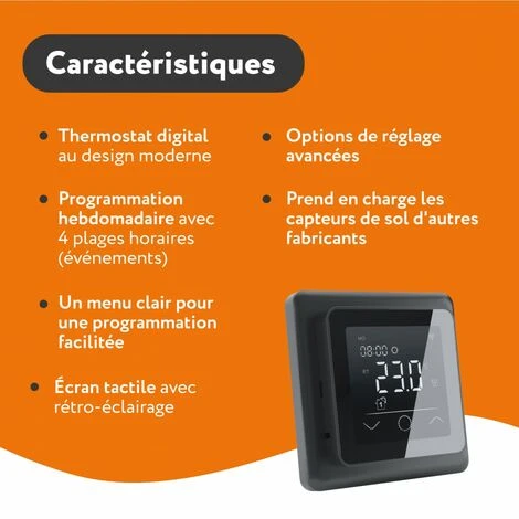 - 1 x Thermostat digital TP 750 Tactile – Noir