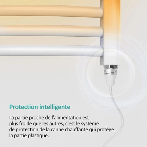 ☛ La degré de protection atteint IP44, ce qui garantit l’utilisation sûre des radiateurs chauffants et des radiateurs de salle de bain.