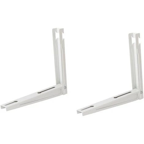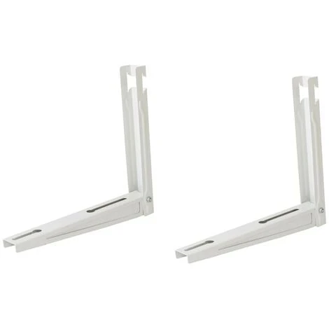 Étagères en forme de L pour climatiseurs extérieurs, pré-assemblées en tôle électrozinguée (Ral 9002), équipées de pieds spéciaux anti-vibrations, équipées de chevilles pour le montage mural. Dimensions P420 x H400 mm.