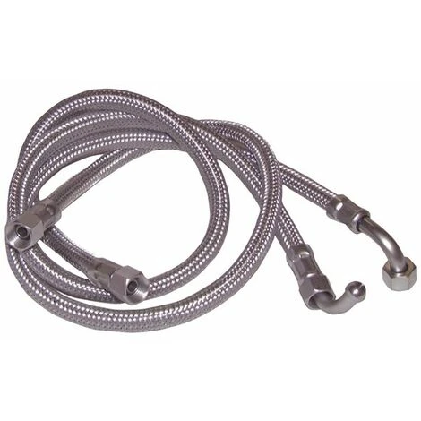 Une extrémité raccord tournant femelle et cône mâle sphérique, de l’autre raccord tournant femelle et cône mâle sur tube coudé.