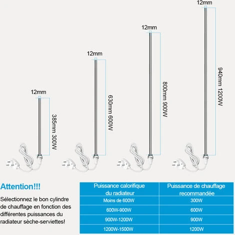 Vous pouvez choisir la bonne cartouche chauffante en fonction de la puissance spécifique du radiateur sèche-serviettes.