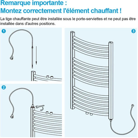 La tige chauffante est adaptée, à la verticale sous le porte-serviettes