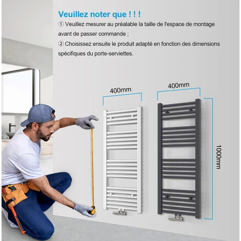 Heilmetz 1000 x 400 mm Sèche-serviettes Radiateur de salle de bains blanc
