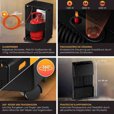 • Performant : poêle à gaz chauffant avec 4 200 watts de puissance