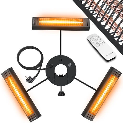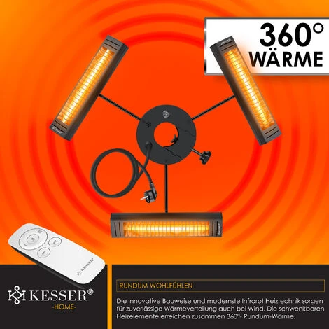 KESSER Chauffage radiant parasol 3000 W, 3 radiateurs infrarouges contrôlables individuellement par télécommande, protection IP65 et bras orientables avec un rayon de 120 – 360°