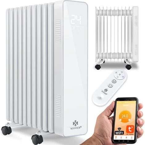 Radiateur à bain d’huile KESSER 2500 W avec application Wi-Fi Smart Home et télécommande, écran LED, minuterie. Minuteur, planificateur hebdomadaire et thermostat, protection contre le renversement et sécurité enfants, chauffe déjà après 6 minutes