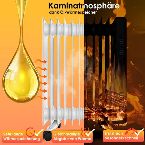 Notre radiateur à bain d’huile de la maison KESSER est la solution optimale pour les longues soirées d’automne et d’hiver. Le radiateur à bain d’huile est parfait pour les pièces qui ont besoin d’une source de chaleur puissante en raison de la faiblesse des radiateurs ou du manque d’étanchéité des fenêtres. De même, le radiateur peut être parfait pour de courts séjours dans une maison de vacances. Grâce à ses roulettes intégrées, ce radiateur est mobile, polyvalent et convient parfaitement pour chauffer toutes les pièces : le garage, l’atelier, l’abri de jardin, la cave, etc. – De plus, il est une alternative intelligente aux chauffages muraux traditionnels avec sa commande manuelle.