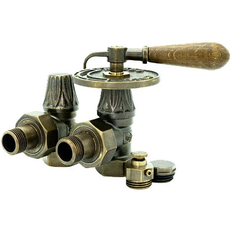 Kit vanne manuelle avec Poignée bois pour radiateur Fonte