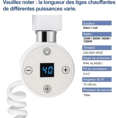 Meykoers Kit Résistance thermostatique de sèche-serviette électrique, Blanc résistance pour 300W Thermoplongeur sèche-serviette