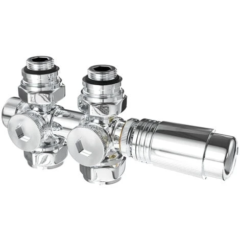 Meykoers Kit soupape thermostatique pour radiateur, Chromée vannes de radiateur pour raccordement bitube, Raccord fileté G 1/2