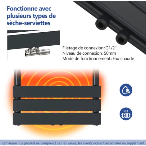 ◆ Sèche-serviette eau chaude Filetage de connexion : G1/2