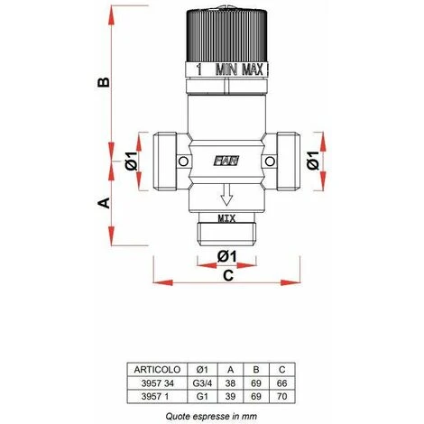 Mitigeur thermostatique pour installations sanitaires avec raccords mâles | Far Rubinetterie 3957