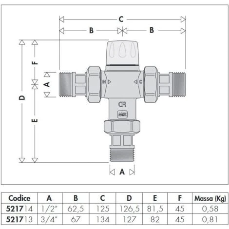 Mitigeur thermostatique réglable avec manette et dispositif avec sécurité anti-brûlure |Caleffi 5217