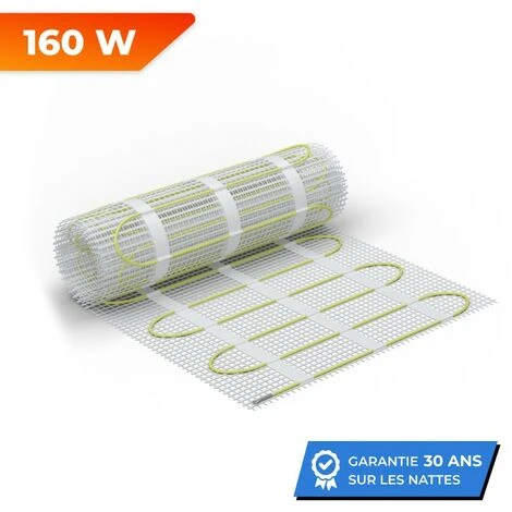 APPLICATIONS: Les nattes chauffantes électriques 160 W/m² Premium pour carrelage, pierre ou chape conviennent comme source de chauffage principal des pièces de vie bien isolées: cuisines, salons, salles de séjours, chambres, salles de bain, couloirs, etc. Pour les pièces dont le besoin en chaleur est plus élevé (caves, vérandas ou combles..) nous recommandons nos nattes chauffantes avec 200W/m². Pour les sols flottants (parquet, moquette, stratifiés, vinyle, etc) nous recommandons nos nattes chauffantes en aluminium, en 150W/m2 ou 80W/m2.