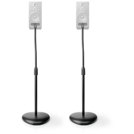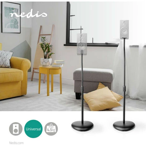 Avec leur design discret et leur finition en noir mat, ces supports de base Nedis© universels sont parfaits pour la plupart des enceintes satellites et des petites enceintes d’étagère. Les pieds sont réglables en hauteur grâce à un mécanisme de déverrouillage manuel qui permet de positionner vos enceintes exactement à la hauteur qui vous convient le mieux.