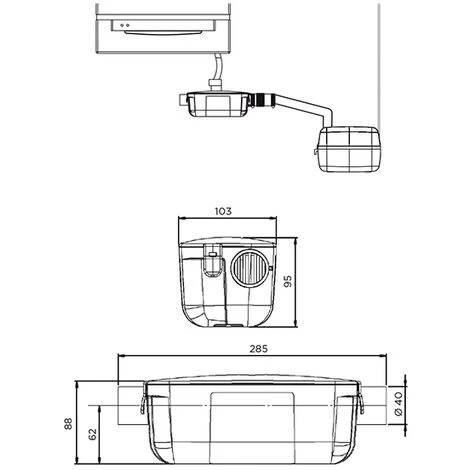 - Il fonctionne sans pompe et peut être placé en amont d’un SANICONDENS© (ou d’une autre pompe).