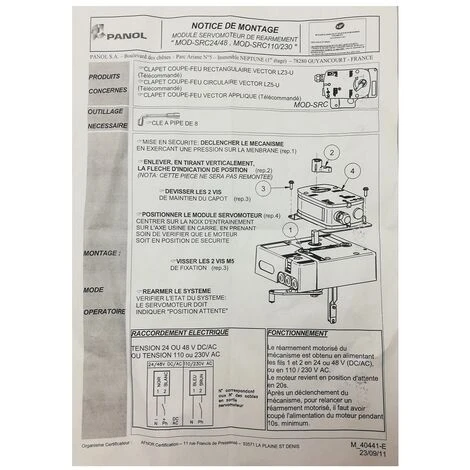 Module servomoteur de réarmement pour clapet coupe-feu VECTOR LZ3-U / LZ5-U / Applique. Outillage nécessaire: clé à pipe de 8. Tension 24 ou 48 V DC/AC ou 110 ou 230V AC. Le moteur revient en position d’attente en 20s. Après un déclenchement du mécanisme, pour relancer un réarmement motorisé, il faut avoir coupé l’alimentation du moteur pendant 10s minimum.