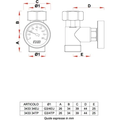 Porte-thermomètre chromé avec thermomètre bimétallique FAR 3433