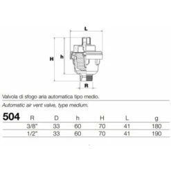 Soupape De Purge D’air Automatique En Laiton Arteclima 504CR – 505CR 3/8 – H. 65