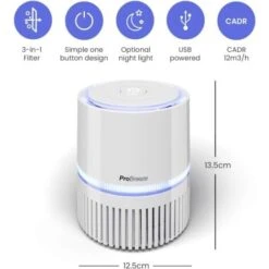 Mini Purificateur D’Air, Silencieux, UV-C, Ioniseur Lumière Ambiante, Assainisseur, USB