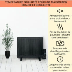 Wallander Radiateur à Bain D’huile Ultra Plat 600W Thermostat – Noir
