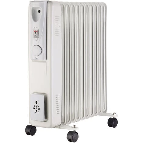 - THERMO-OLIE: la différence avec un chauffage central se situe à l’intérieur. Au lieu de l’eau, il y a de la thermo-huile à l’intérieur d’un radiateur à huile. Lorsque vous allumez le radiateur, l’huile est chauffée et émet de la chaleur. Grâce à sa conception avec 11 ailettes séparées, le chauffage chauffe très efficacement avec une puissance de 2 500 watts.