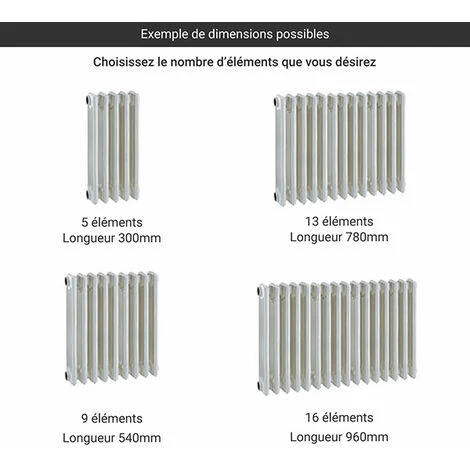 – A partir de 14 éléments, l’ajout d’un 3ème pied au centre du radiateur est préconisé en raison du poids important
