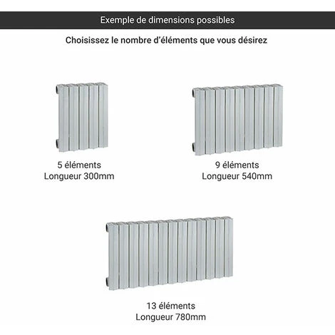 – A partir de 14 éléments, l’ajout d’un 3ème pied au centre du radiateur est préconisé en raison du poids important
