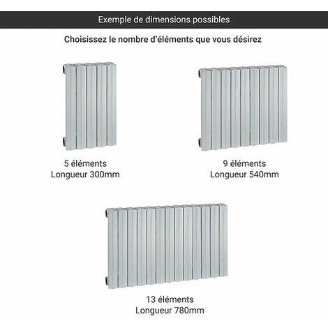 – A partir de 14 éléments, l’ajout d’un 3ème pied au centre du radiateur est préconisé en raison du poids important