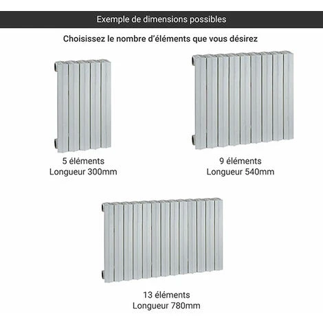 – A partir de 14 éléments, l’ajout d’un 3ème pied au centre du radiateur est préconisé en raison du poids important