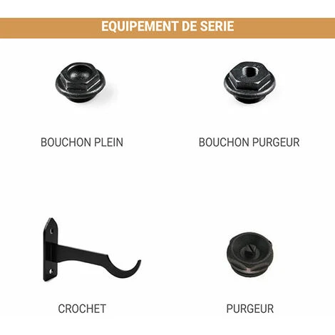 – 1 bouchon à positionner en bas du radiateur, à droite ou à gauche