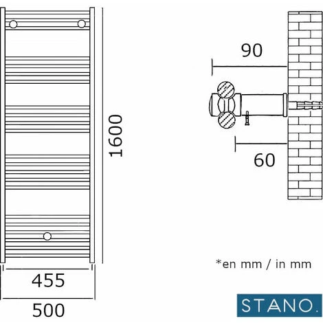 A noter : – Robinetterie non incluse. Le Robinet d’arrivée pour sèche-serviette noir, du même coloris, peut être commandé séparément- Cache tuyau mural sèche-serviette noir, pouvant être commandé séparément- Existe aussi en version blanc, et sous d’autres dimensions, voir notre gamme sèche serviette