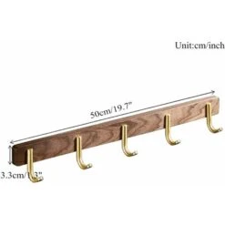 Crochet Porte-serviettes 5 Crochets Patère Murale Patère, Or Brossé, Bois + Acier Inoxydable