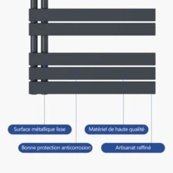 Meykoers Sèche-serviettes Eau Chaude Anthracite Vertical 667W Radiateur Sèche-serviette 120x50cm